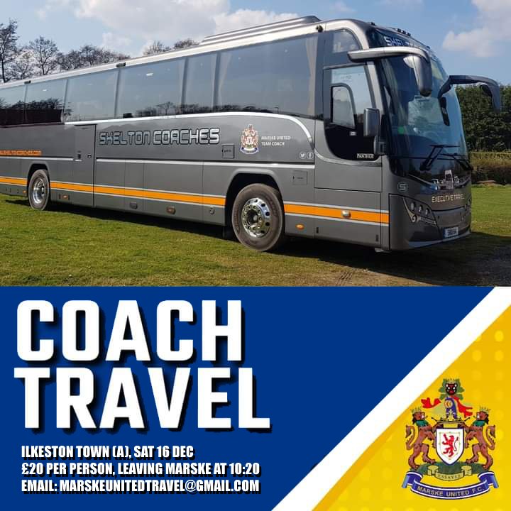 We're back in action on Saturday when we visit Ilkeston Town. Coach travel is available, £20 per person, leaving Marske at 10:20am. To reserve a seat email marskeunitedtravel@gmail.com