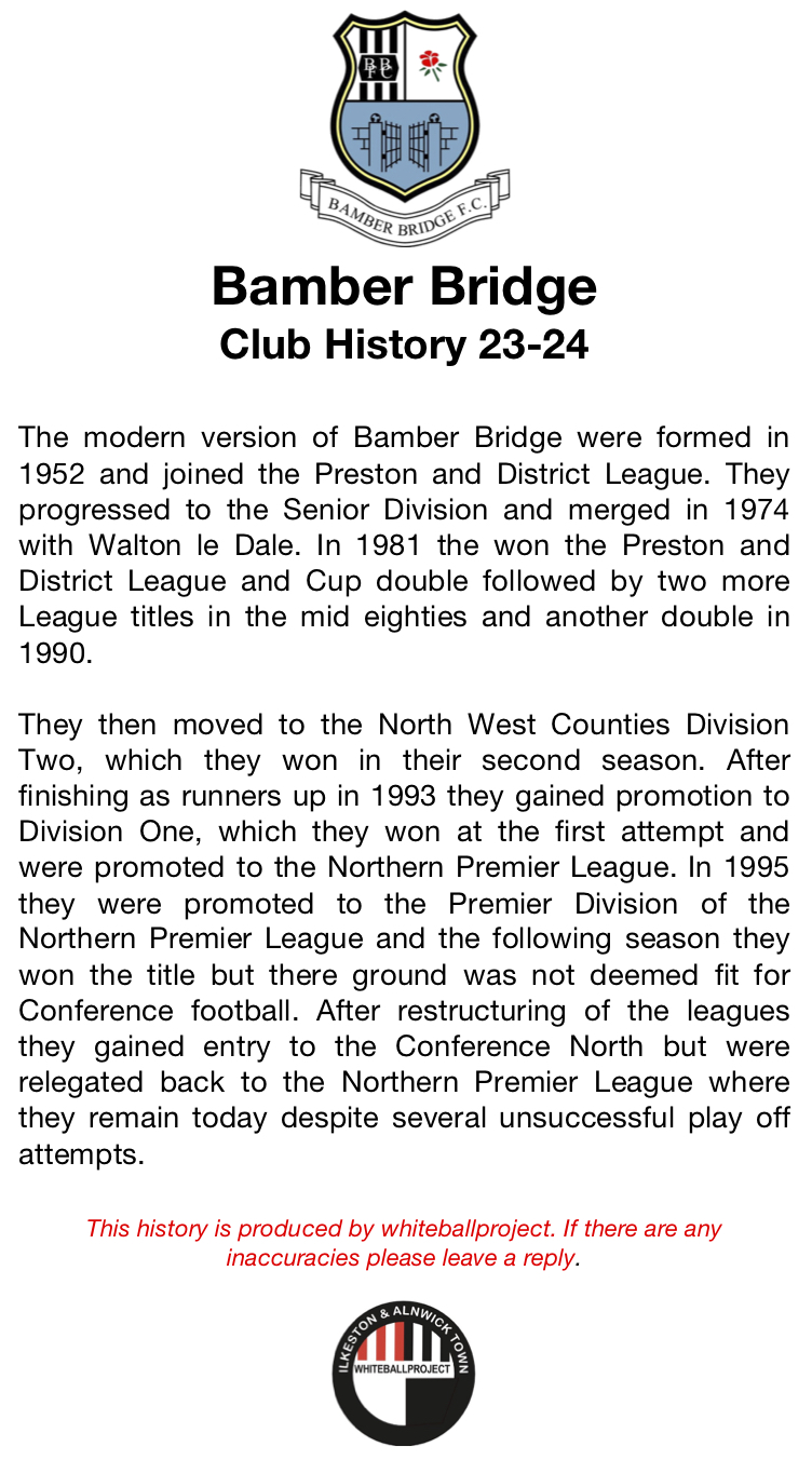 On Tuesday night we travel to Bamber Bridge for the second time. The last time we went there the match was postponed after we had arrived there. Here’s hoping that this time the match will go ahead.