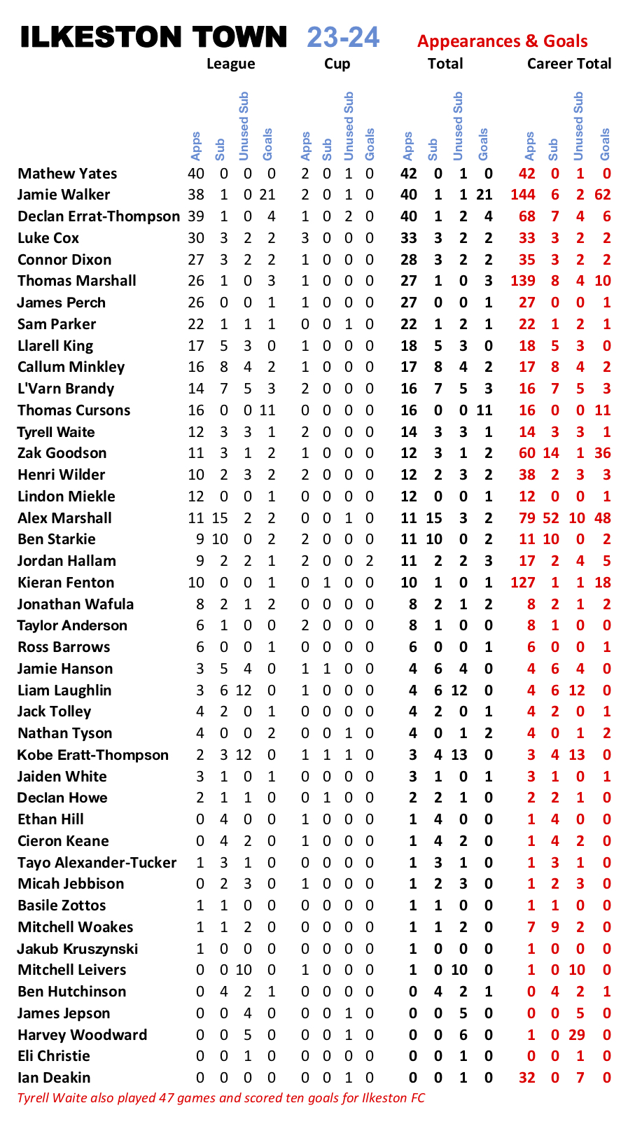 They are 13th in the league table with 47 points from 38 matches (10 points less than Ilkeston)