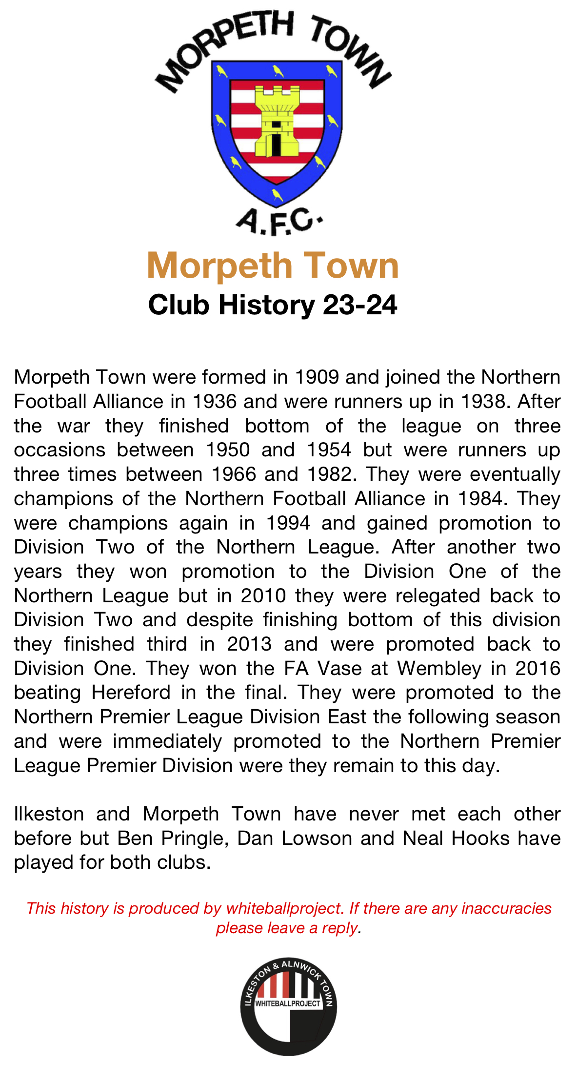 We're not expecting many fans from Morpeth to make the journey so please come and swell the gate if you can.