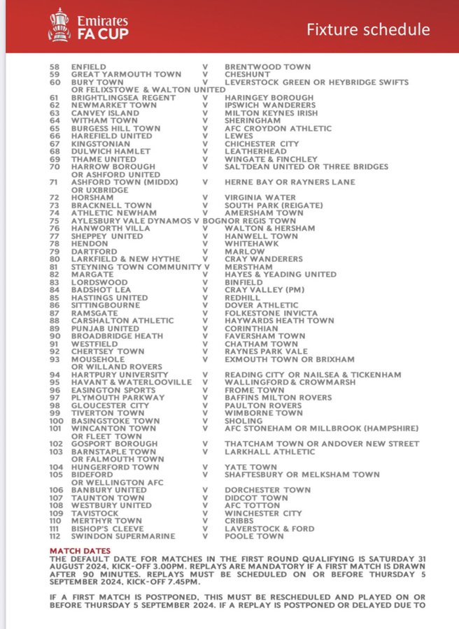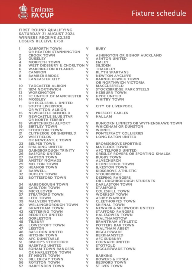 The draw for the FA Cup 1st Qualifying around has been published.
