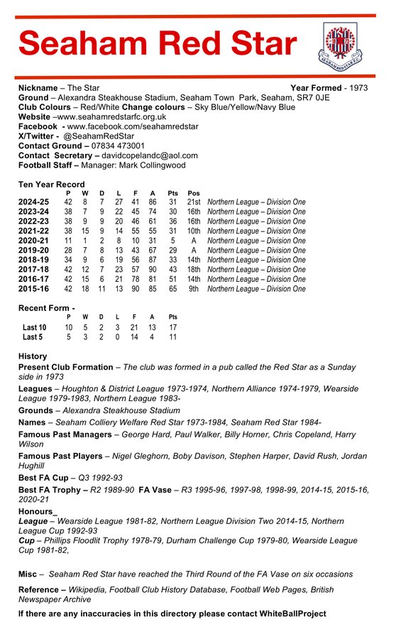 After their goalless draw at Sunderland RCA third placed take on first placed Seaham Red Star under the lights at the real St James Park tonight at 7:45pm. This game will be a real test of the Wicks promotion credentials and a win could put Alnwick back tp their usual Tuesday spot at the top!