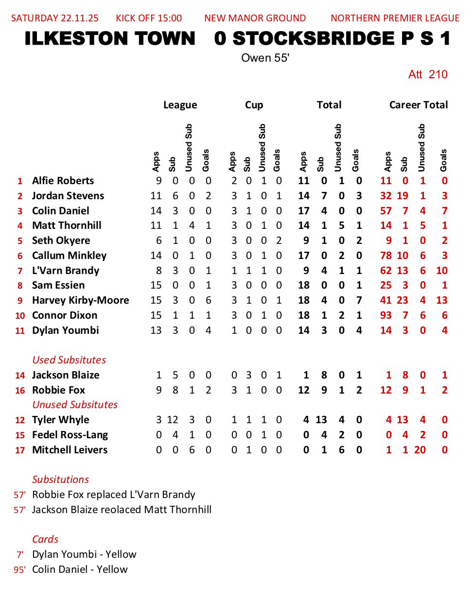 I really hope that whatever team we put out on Saturday, they can produce a performance to be proud of whatever the result. Stocksbridge showed last Saturday that if you battle for everything, (without getting sent off) then it’s possible to get a result. The run of four successive defeats needs to be halted. Obviously FC United away is not an easy place to do it but we are at a crossroads. The last two defeats were embarrassing. although the 0-5 defeat at Hebburn doesn’t look quite so bad now after they hit four past Gainsborough last night and before that they hit eight past Warrington.
