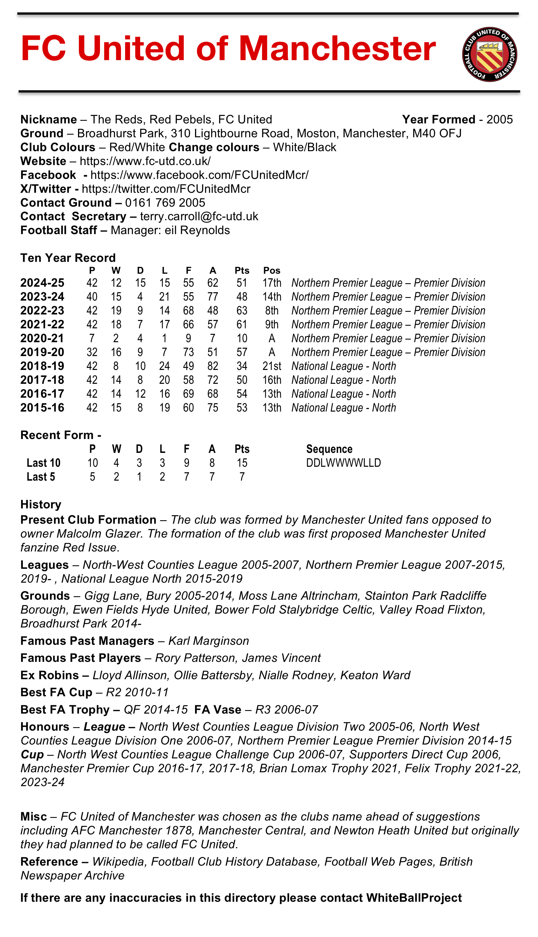 FC United are having their best season since the 2019-20 COVID disrupted season when they were 2nd when the season was ended prematurely.