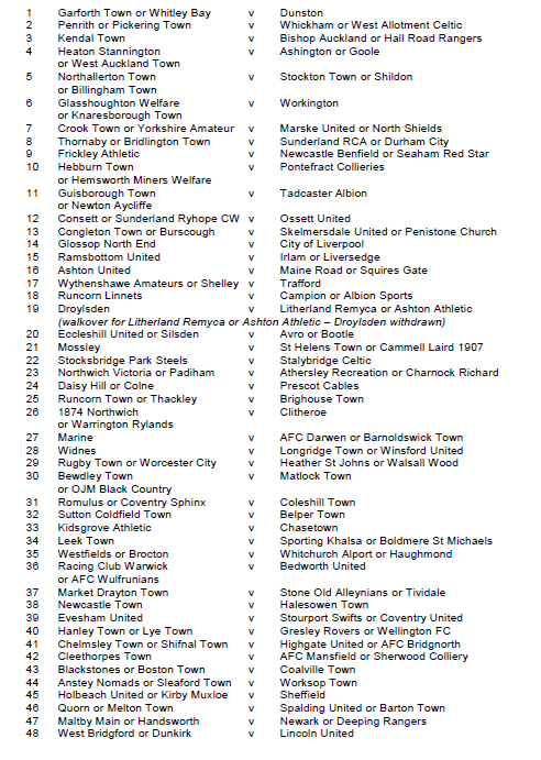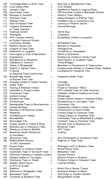 The FA Cup Preliminary Qualifying Round has been published. Games to take place on Saturday 12th September. Winners receive £1,444. Losers receive £481. [/url] [url=]