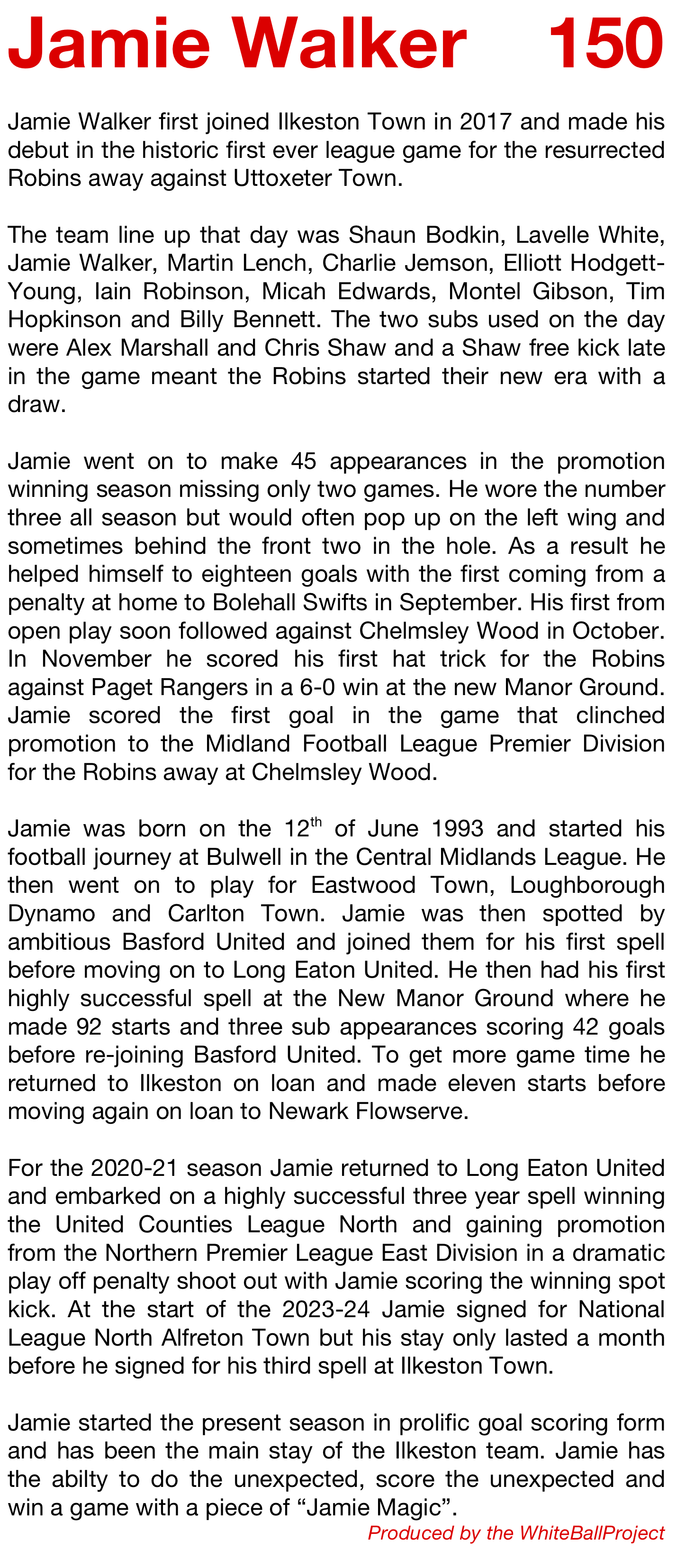 Jamie Walker if selected will make his 150th appearance for Ilkeston Town tomorrow night!