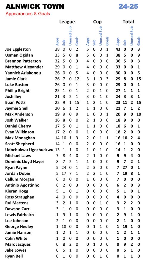 Re: Alnwick Town Stats 2024-25