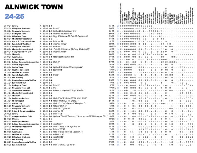 Alnwick Town Stats 2024-25