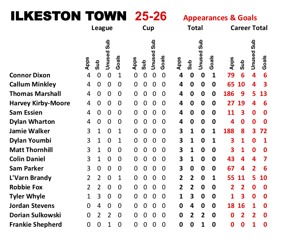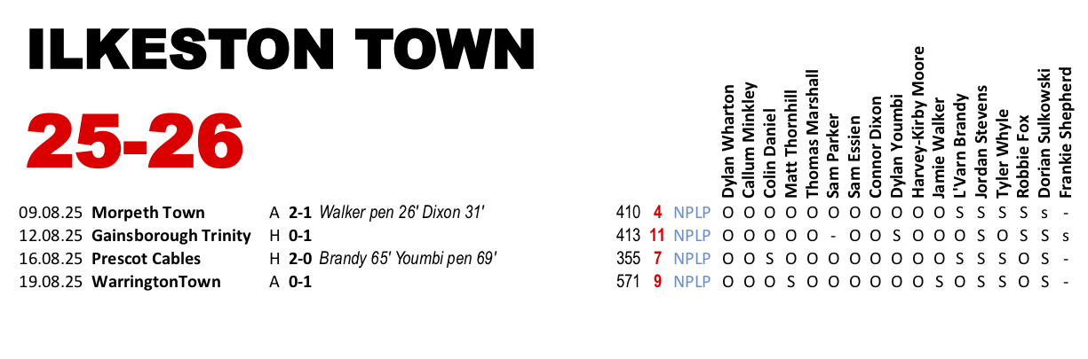 Fox and Brandy replaced on 76 mins. Bamber 2 Ilkeston 0