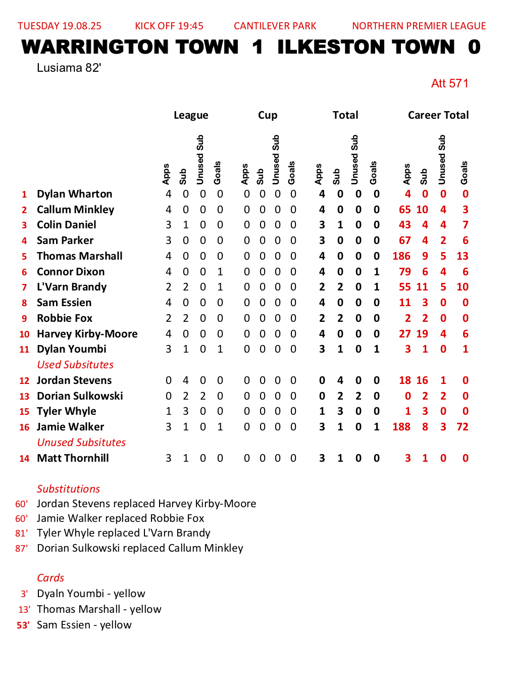 Sat 10 Sep 2016. A Warrington Town Evo-Stik Premier L 1 - 4