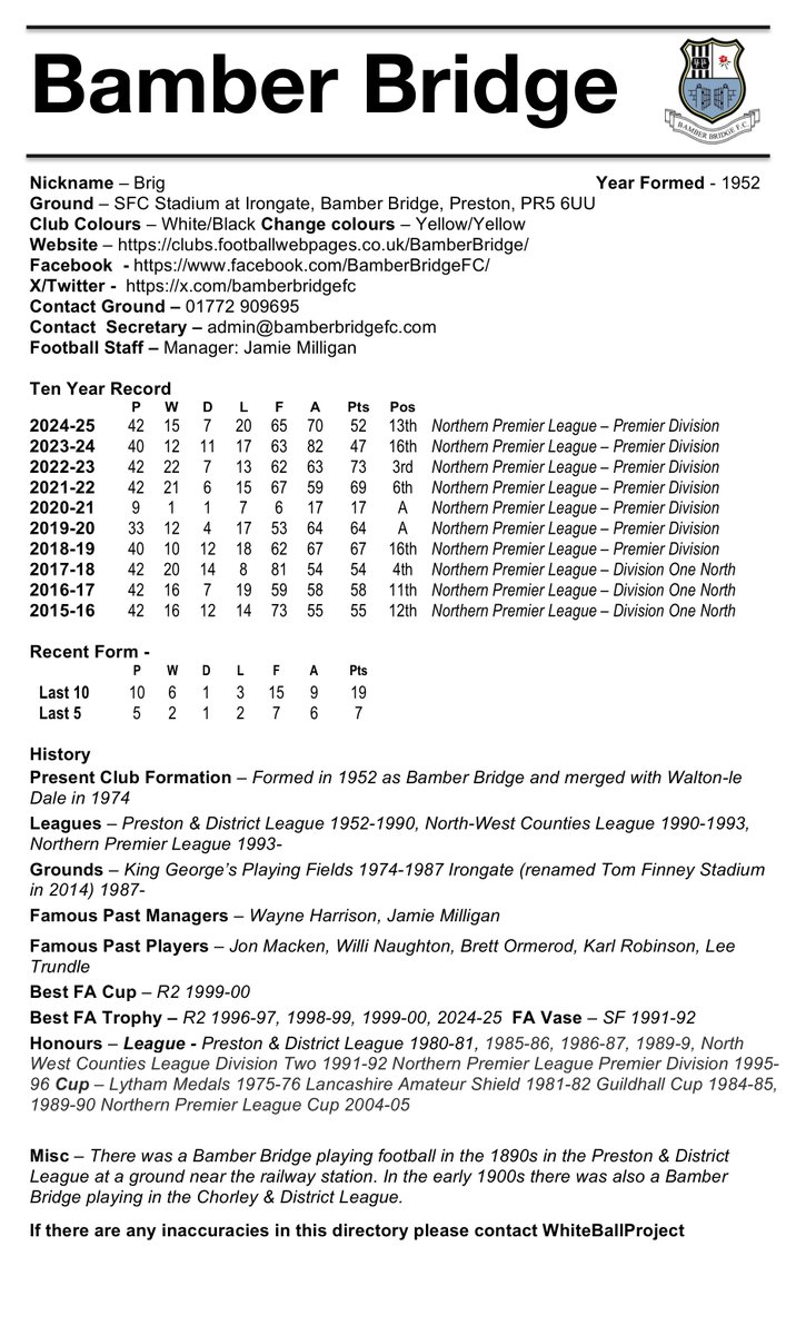 We go again on Saturday at Bamber Bridge who have made a decent start to the season.