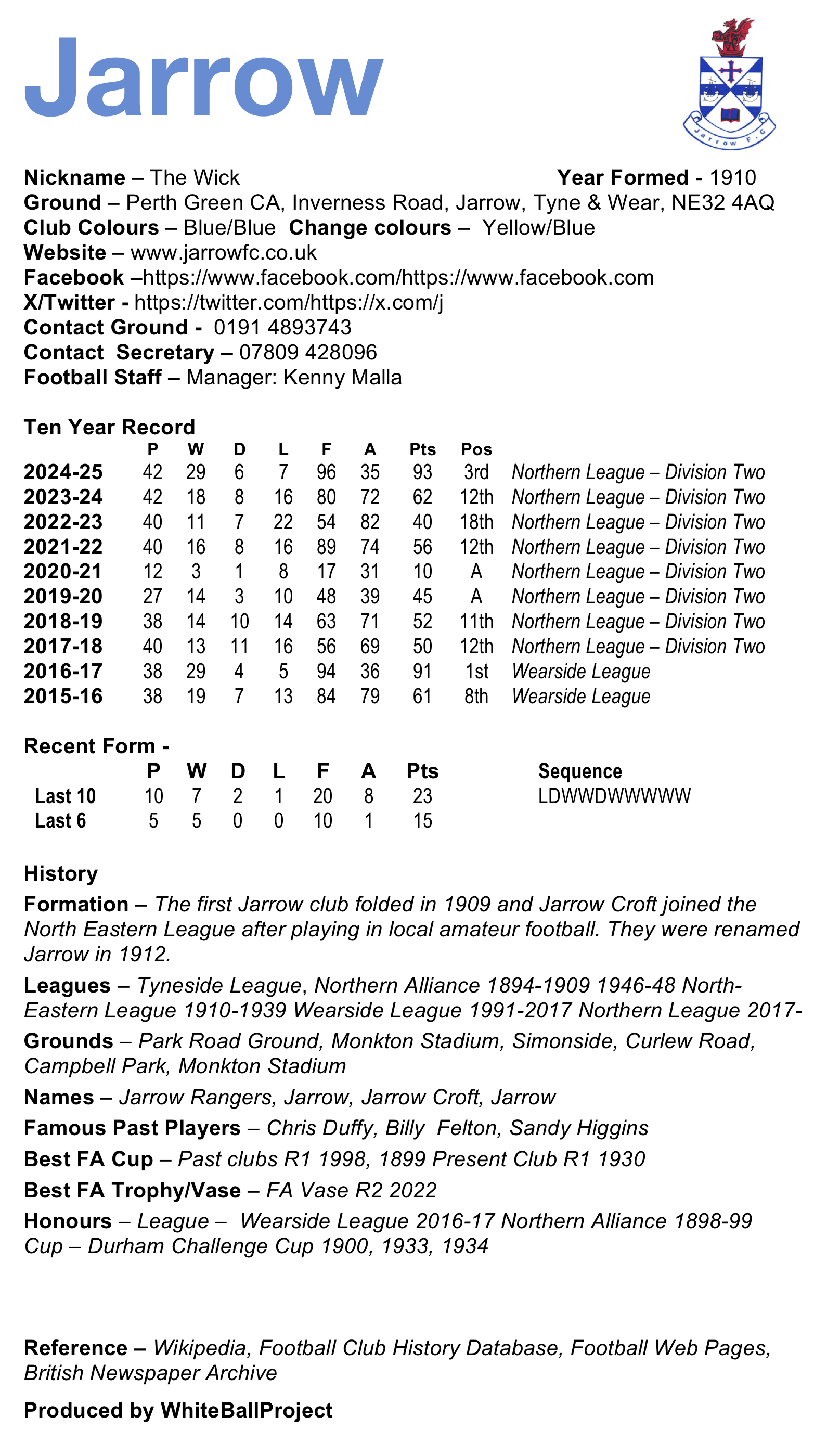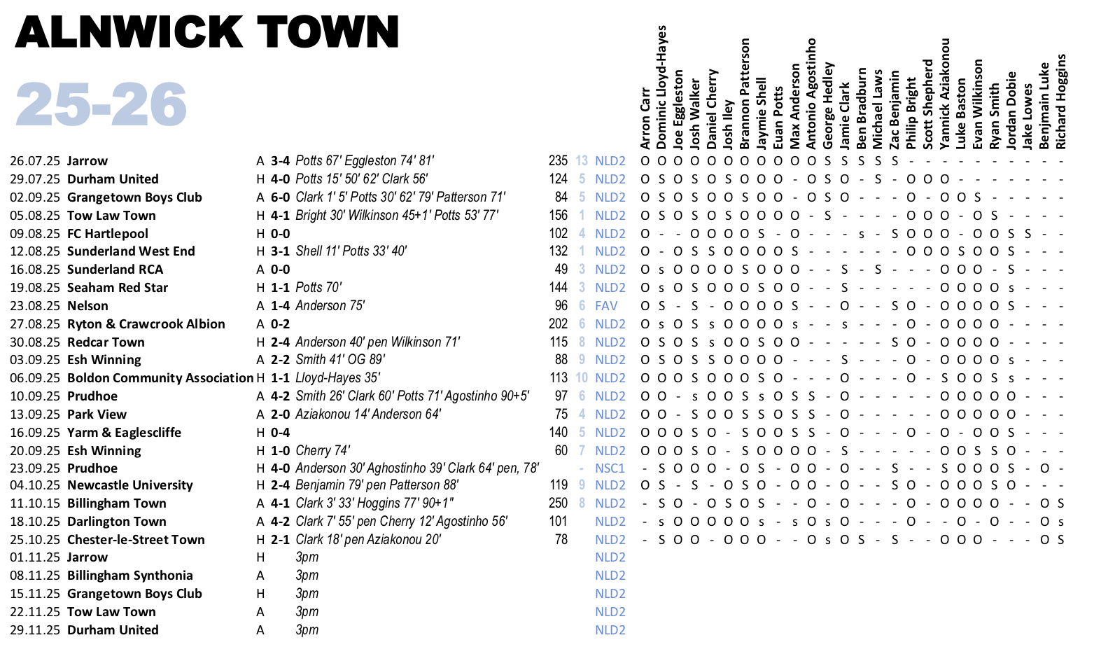 Alnwick Town entertain in form Jarrow in a top of the table clash at St James Park tomorrow. Alnwick have won their last three games scoring ten goals in the process despite losing top scorer Euan Potts who has joined Blyth Spartans. In fact the Wick have scored sixteen goals in five games since Potts left. The man behind most of those goals is Jamie Clark who has hit top form five in the last four games.