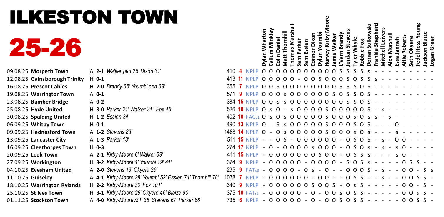 28 Sep 24. Ilkeston 2 Ashton 2. Cursons, Marshall