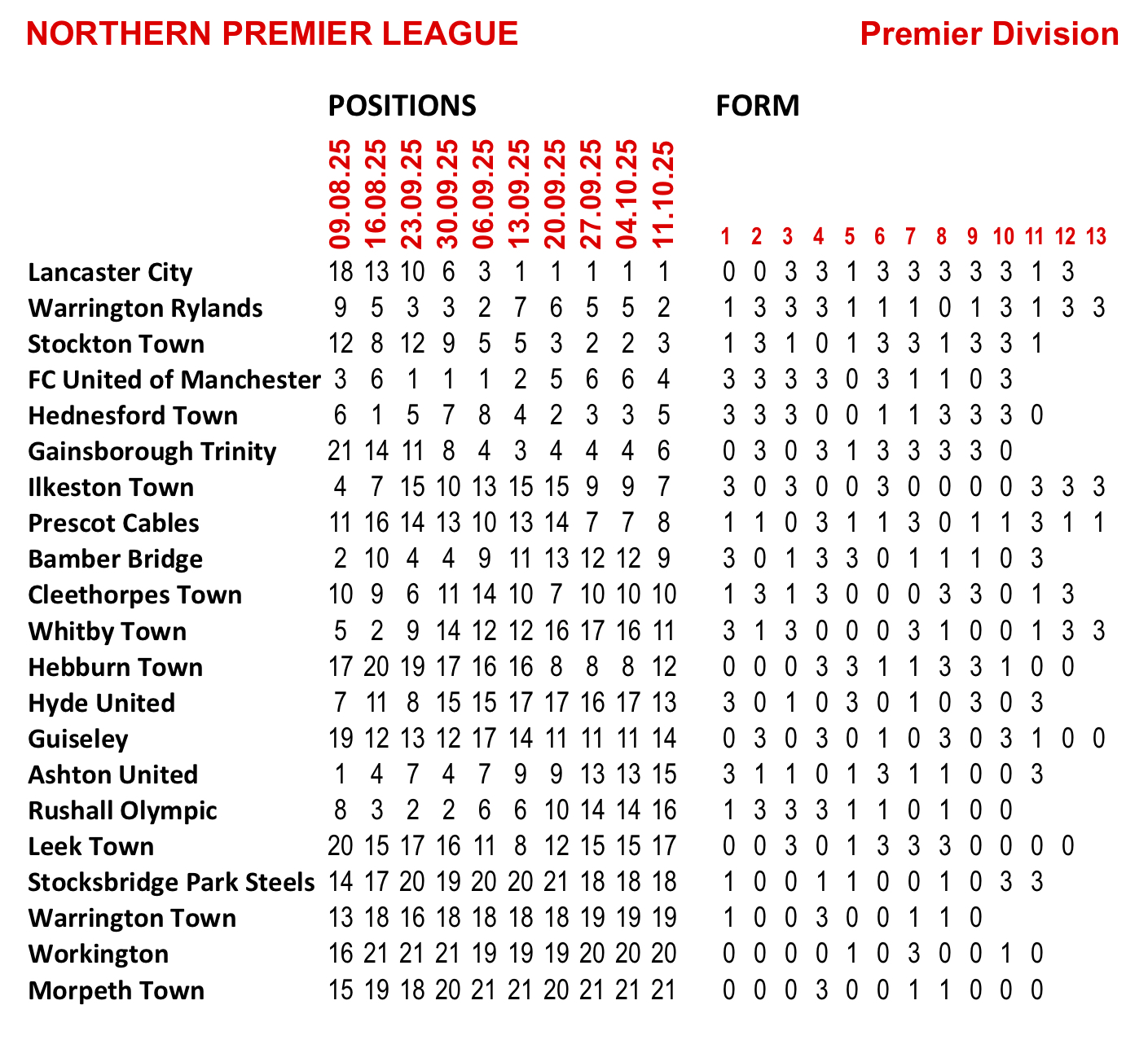 Rylands are currently 2nd in the league table:  P13, W6, D6, L1, F 21, A15,  Points 24